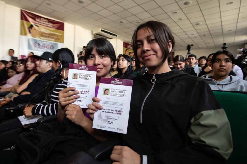 Añadió que la beca universal “Gertrudis Bocanegra” es exclusiva de Michoacán. Y los estudiantes podrán registrarse del 15 al 21 de diciembre. Este apoyo beneficiará a 98 mil estudiantes de los 121 planteles públicos de Educación Superior en la entidad. “La tarjeta del Banco del Bienestar y el primer pago se entregarán en enero de 2026”, señaló.