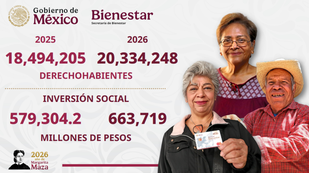 El secretario técnico del Gabinete de la Presidencia y coordinador general de Programas para el Bienestar, Carlos Torres, señaló que, en 2026, con el incremento a un billón tres mil 326 pesos, se beneficiará a 42.9 millones derechohabientes, incorporando a 10 millones de personas, incluyendo a siete millones de familias con estudiantes de primaria. Añadió que los Programas para el Bienestar, en su conjunto, son el corazón de la política social del Gobierno de México. Y son la base de la 4T, “porque colocan en el centro a las personas, reconocen derechos y transforman vidas”.