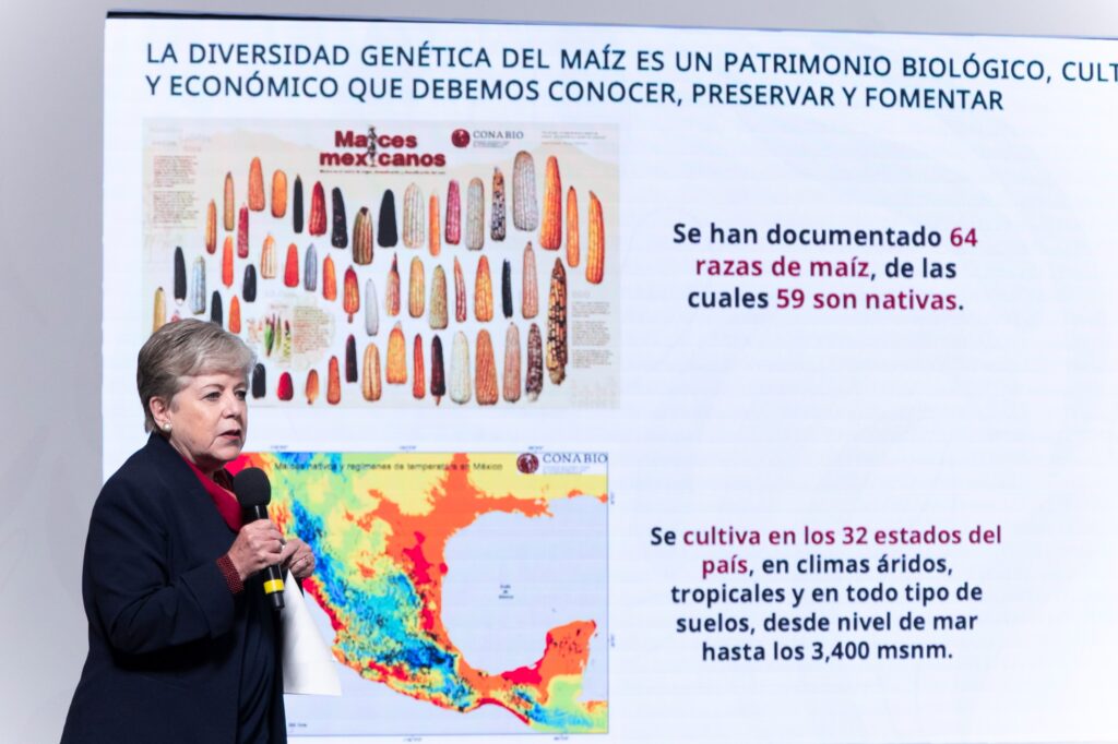 Por su parte, Alicia Bárcena Ibarra, titular de la Secretaría de Medio Ambiente y Recursos Naturales, resaltó que, en México, el maíz —del que hay 64 razas y 59 son nativas de nuestro país— es identidad, seguridad alimentaria, y un símbolo de resistencia y de diversidad cultural. Remarcó que la domesticación del maíz comenzó hace nueve mil años gracias a que las manos campesinas favorecen el proceso de evolución. Con ello se generó una gran diversidad genética a través de la cosecha y el intercambio de granos entre las productoras y los productores.