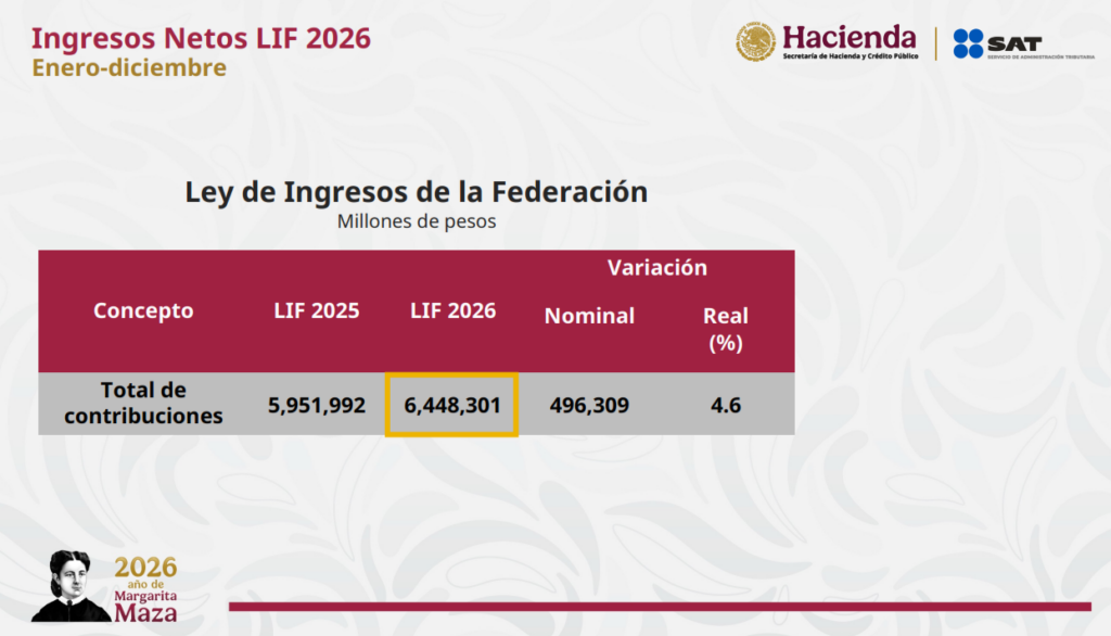 El titular de la Secretaría de Hacienda y Crédito Público, Edgar Amador Zamora, informó que para 2026 se proyecta una recaudación de seis billones 448 mil mdp. Es decir, un aumento en términos reales de 4.6 por ciento. Y, además, se implementarán “Mejores prácticas de transparencia en los procesos de auditoría”, documento publicado el 5 de enero, que establece que: