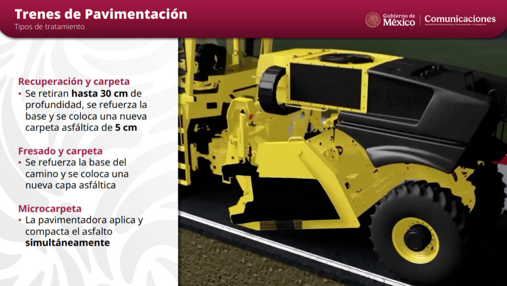 El titular de la SICT destacó que, en 2026, adquirirán 11 trenes de pavimentación que se sumarán a los 20 adquiridos en 2025. Con ello, cada estado tendrá estos equipos para atender la Red Carretera Federal Libre de Peaje, a través de trabajos de recuperación y carpeta, fresado y microcarpeta.