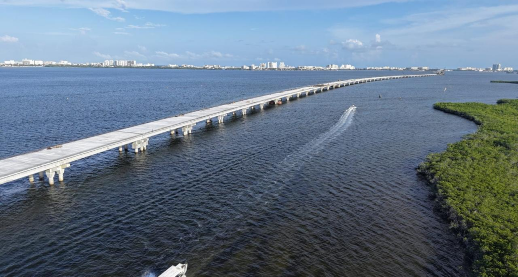 “Esta obra emblemática transformará la movilidad en Cancún, al conectar la ciudad con la zona hotelera e impulsar el desarrollo social y económico de la zona”, indicaron.