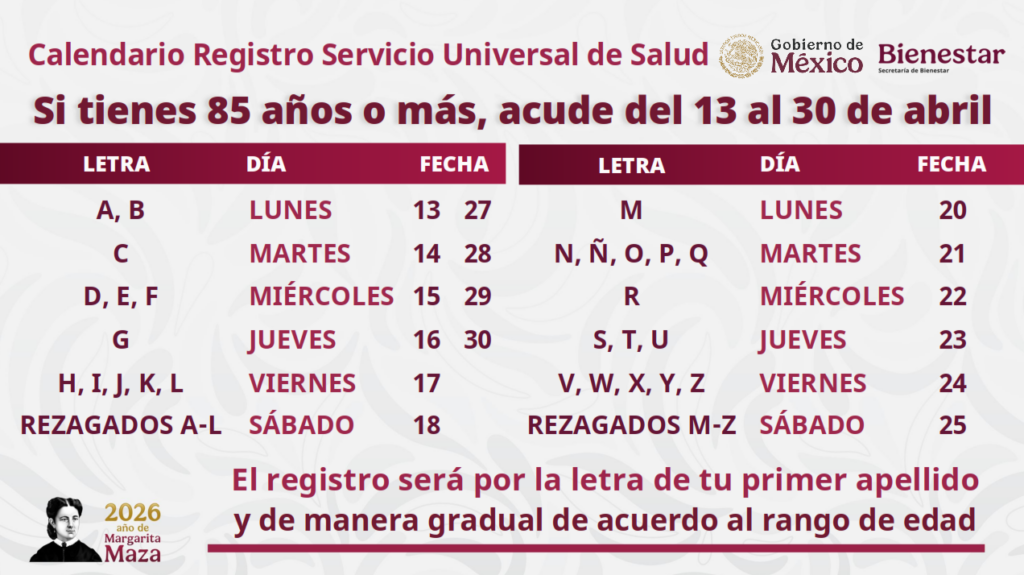 En la conferencia matutina de este martes 7 de abril de 2026, la presidenta, Claudia Sheinbaum, resaltó la publicación de un decreto presidencial para crear el “Servicio Universal de Salud”. El objetivo, aseveró, es garantizar que los mexicanos puedan recibir atención médica en cualquiera de los tres sistemas de salud pública: IMSS, IMSS Bienestar e ISSSTE. Para ello, del 13 al 30 de abril, comenzará el registro para la credencialización, iniciando con las personas de 85 años y más.