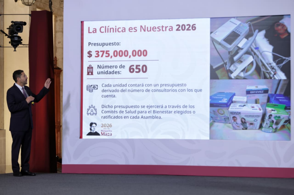 “En 2026 vamos a llevar a cabo el programa La Clínica es Nuestra en el ISSSTE. En todas las unidades médicas del ISSSTE donde se va a realizar este programa, hay asamblea a las 11:00 de la mañana hora local. Y pueden participar todos los derechohabientes en su unidad de adscripción. El presupuesto que vamos a aplicar es de 375 millones de pesos y vamos a beneficiar a 650 unidades médicas, cada unidad cuenta con un presupuesto”, resaltó.