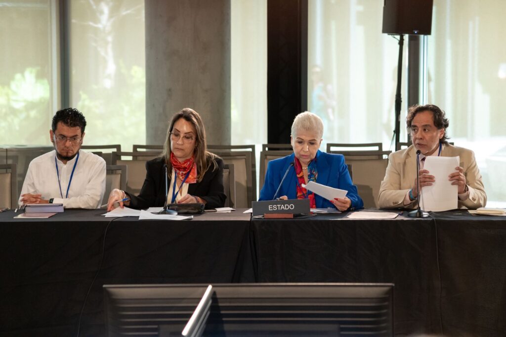 La delegación mexicana estuvo encabezada por la embajadora Luz Elena Baños, representante permanente de México ante la OEA. A ella la acompañó el coordinador general de Patrimonio Cultural y Educación Indígena del Instituto Nacional de los Pueblos Indígenas (INPI), Gustavo Torres Cisneros. Así como representantes de la dirección general de Derechos Humanos y Democracia de la Secretaría de Relaciones Exteriores (SRE).