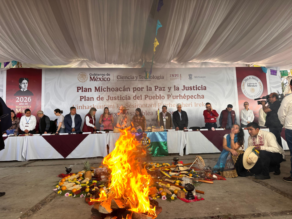 En el marco del Plan Michoacán por la Paz y la Justicia, el pasado viernes 13 de marzo de 2026, se realizó la sexta Asamblea Regional del Plan de Justicia del Pueblo P’urhépecha en la Plaza Comunal de esta comunidad. Allí se congregaron 574 autoridades comunitarias, jefes de tenencia, comisariados de bienes comunales y ejidales de 121 comunidades p’urhépechas, así como 40 dependencias de gobierno.